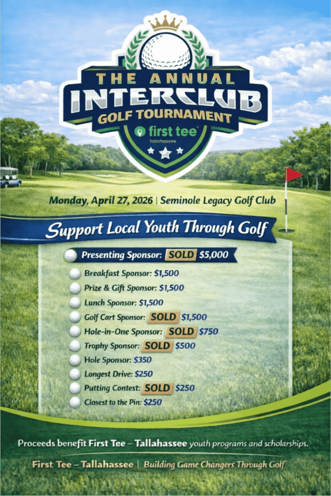 Join us for a premier day of golf and fellowship at the Fourth Annual First Tee – Tallahassee InterClub Golf Championship, where local clubs come together in spirited competition to support youth development through the game of golf.